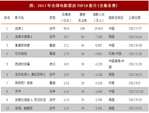 从单月票房同比增速分拆看,2017年8月单月实际票房同比增速为年内最高,实际票房(不含服务费)增速69.9%,其中主力贡献为《战狼2》,该片8月实现实际票房39.6亿元(累计实际53.06亿)。17年4月、10月单月票房增速均在40%以上,分别为《速度与激情8》及《羞羞的铁拳》带动。
