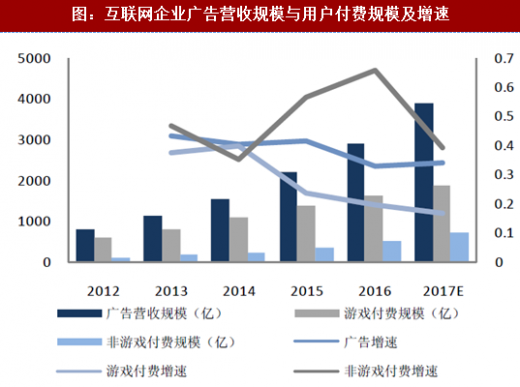 图:互联网企业广告营收规模与用户付费规模及增速