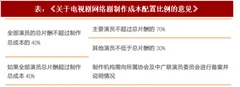 2017年9月22日,中国广播电影电视社会组织联合会电视制片委员会等联合发布《关于电视剧网络剧制作成本配置比例的意见》,对于演员薪酬提出指导意见。对此,:该政策由协会推出不具备强制执行性,执行起来有一定难度,同时演员费用已然多元化,常见有项目费、顾问费、投资等,规避路径和方式较多,该政策对具备头部价值明星影响十分有限,整体有利于挤出带有泡沫的明星薪酬,市场化定价才是主要模式,同时向制作倾斜也是纯明星项目失败较多后的大势所趋,整体政策影响我们判断应十分有限。