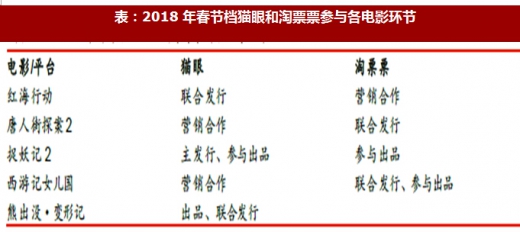 不仅在预售方面,在制作、宣发等全产业链条中,互联网售票平台在2018年春节档中也更为深入的融入: