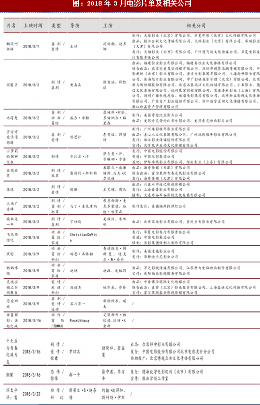 对于2018年1-2月份预期整体的票房同比增速有望在20%~30%。预期2018年全年的票房增速有望在20%左右,甚至以上(考虑去年有《战狼2》这部现象级影片,今年同比有不确定性),如果有更多的头部影片推出并受消费者认可,增速存在进一步提升的可能。经历了过去几年线下渠道快速渗透的阶段,当前的票房增速更多地由“渠道下沉 影片质量”双因素决定,对于渠道下沉的速度,2018年全年影院数的增速在15%~20%,单银幕产出有望停止下滑开始回升。