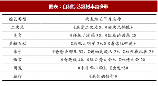 内容题材百花齐放,有效吸引不同群体。影视剧方面,2017 年网络剧共涉及 23 个类型,包括喜剧、爱情、悬疑推理、青春校园、古代传奇、玄幻、奇幻、软科幻、言情等,悬疑推理、青春校园等类型剧纵向发展,出现如《白夜追凶》、《无证之罪》、《你好,旧时光》等叫好又叫座的作品;综艺方面,2017 年上线了一批定位垂直领域的节目,覆盖了美食、亲子、辩论、游戏、家装、萌宠、旅行等生活中常见的主题,捕捉不同观众群体的兴趣爱好和审美偏好。