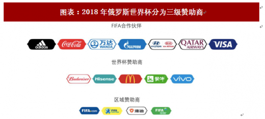 国际足联将赞助商分为三级,其中第一级为fifa的白菜网送体验金无需申请的合作伙伴,将会出现在fifa组织的全部大型赛事中,相比4年前的巴西世界杯,本届俄罗斯世界杯新增万达、俄罗斯天然气公司和卡塔尔航空三个一级赞助商,阿联酋航空和索尼不再是fifa白菜网送体验金无需申请的合作伙伴。二级赞助商作为单届世界杯的合作方,巴西世界杯英利能源成为中国唯一一家世界杯合作企业,本届俄罗斯世界杯五家二级赞助商中,中国企业数量增加至三家,凸显国内企业对本届世界杯的重视。三级赞助商由区域品牌支持,中国的雅迪成为俄罗斯世界杯的区域赞助商。