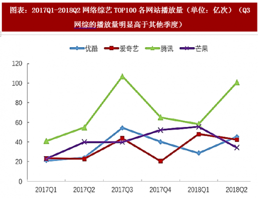 网综播放量已经超过台综,综艺流量争夺的核心是网综制作能力的争夺,q3 将会成为网综流量争夺主战场。从2018年年初至今的流量统计来看,网综流量已经超过台综,由于政策的影响和人才的转移,近2年台综流量持续下滑而网综流量高速增长,网综已经成为综艺流量争夺的核心。而从网综流量的季度变化来看, q3是网综的高峰期,q3的流量争夺将确定视频平台在综艺流量的排位。(目前综艺格局中,台网由于政策限制和内容审核严,其播放量仍处于下降通道,综艺流量的增长主要依靠网综,而网综的受众群体主要为年轻人,所以 q3 的暑假是网综流量的高峰期)。