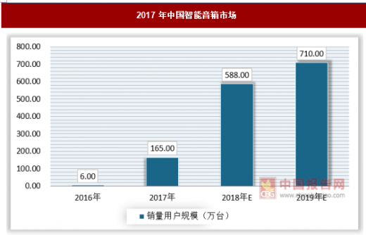 2017年中国智能音箱市场在阿里的重金推广下,市场规模达到质的飞跃;2018年随着新玩家的进入行业热情依然高涨,中国智能音箱零售市场规模预计逼近600万台的销量。