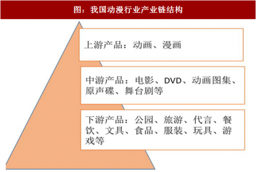 动漫行业上游以、漫画为基础;中游产品是动漫内容的主要组成部分,包括图集、手稿等印刷品,、碟片、话剧等音像作品;下游是动漫衍生品,包括各种与动漫有关的日用品以及与动漫代言相关的各种领域。动画是动漫行业的核心,是上下游起承转合的重要环节,动画制作是动漫ip完整转化的过程。