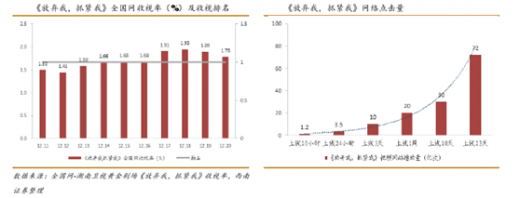 《放弃我,抓紧我》于 1 月 1 日完美收官,自 12 月 11 日开播以来,平均收视达到 1.53%,在全国网范畴内连续 10 天稳居省级卫视同时段榜首,且每日收视均保持在 1.5%以上。首播之日 cms52 城收视率高达 1.23%,随着剧情展开,收视率一路高升,临近收官时,在跨年夜多家卫视直播晚会的挤压下,该剧最高收视率达到 1.911%,赶超同时段第 2 的电视剧达110.93%。新媒体方面,播出期间,《放弃我,抓紧我》播放量位列全网第一,上线 10 小时即破 1.2 亿,24 小时后突破 3.5 亿,3 天后突破 10 亿大关,之后点击量更是势如破竹,仅一周便迈过 20 亿,上线 10 天突破 30 亿,截至 2017 年 1 月 1 日收官,全网总播放量已超过 72 亿。《放弃我,抓紧我》的出品团队梦幻星生园影视向来善于捕捉年轻观众群心理,创作原则中 “为女性造梦圆梦”占有非常重要的地位,堪称业内“电视剧少女心收割机”。我们认为,制作高标准、演员高完成度、剧本高思想,三大支柱共同发挥作用,促使《放弃我,抓紧我》在播出上线后迅速并持久地占据公众视野,成为岁末年初最受关注的热剧。《放弃我,抓紧我》的出现不仅是它本身的成功,更是完成了对“偶像剧”的“平反”,为电视剧市场和观众提供了看待“偶像剧”的新思路,成为“新型偶像剧”的开端。