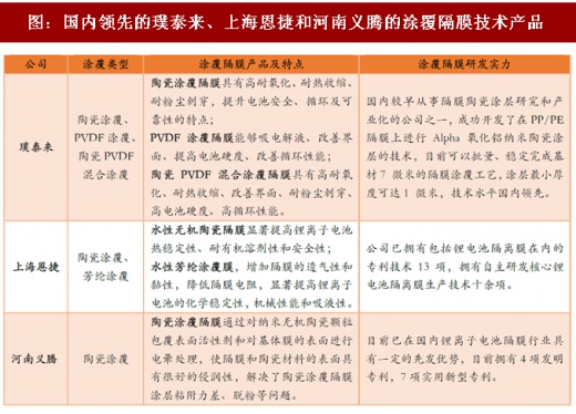 3、涂覆技术有效改善隔膜综合性能,专业化涂覆企业崭露头角