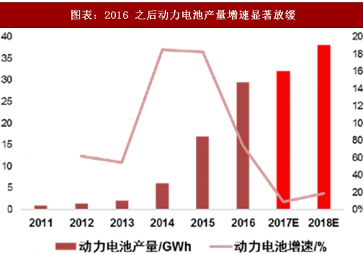 2017 年 4 月 6 日,工信部发布了《汽车产业中长期发展规划》,明确提出到 2020 年我国新能源汽车年产量将达到 200 万辆,以及到 2025 年我国新能源汽车销量占总销量的比例达到 20%以上的发展目标,意味着到 2020 年国内动力电池的需求将达到 130gwh,2017-2020 年的复合增速达到 45%左右;步入中长期,电动车由于其综合优势必将在汽车销量中占据主要位置,销量真正爆发的时点取决于电动车的续航里程、持有成本等,其中最核心因素是电动车与燃油车在持有成本上的“平价”。中长期内,动力电池的实际需求取决于新能源汽车渗透率提升的速度,按我国一年汽车销量 3000 万辆计,电动车平均带电量 60kwh,电动车的渗透率每提升 1 个百分点,即带动动力电池需求增加 18gwh。