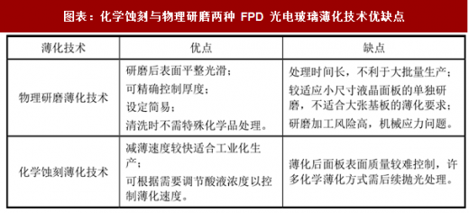 fpd 光电玻璃薄化技术分为物理研磨薄化技术和化学蚀刻薄化技术。