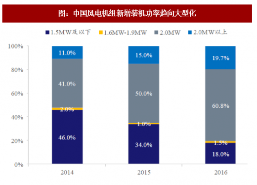 图:中国风电机组新增装机功率趋向大型化