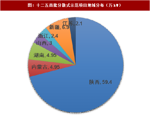图:十二五首批分散式示范项目地域分布(万kw)