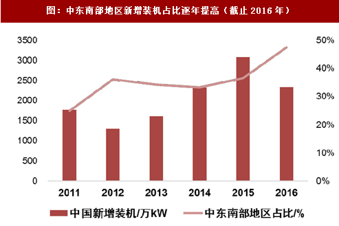 图:中东南部地区新增装机占比逐年提高(截止2016年)