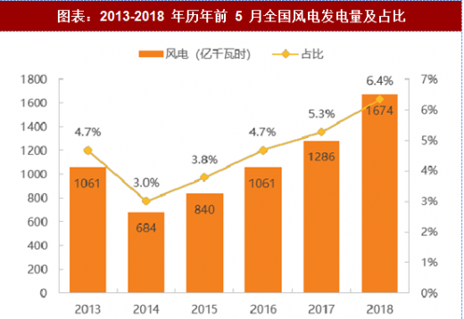 量方面,纵观 1-5 月份全国各类发电,风力发电以 30.2%的同比增速居于首位。风电发电量达 1674 亿千瓦时,约占全国发电总量的 6.4%。发电量与占比的持续提升表明风力发电在我国电力能源结构中的重要性持续增强。