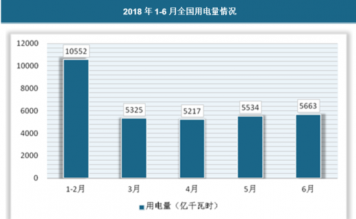 6月份全国用电量为5663亿千瓦时,同比增长了8.0%,2018年1-6月累计用电量约为32291亿千瓦时,同比增长了9.4%。