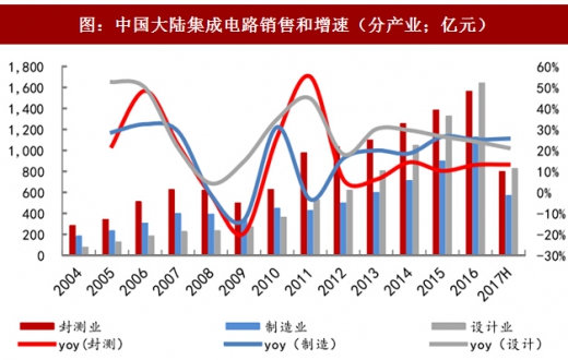 1、三大环节销售均增长,封测产业销售额连居首位