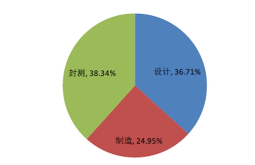 中国集成电路产业通过一系列政策密集出台、海外并购、国内市场强劲需求等推动下,集成电路产业设计、制造、封装都上了一个台阶,产能、技术方面逐渐接近国际巨头先进水平。2014 年中国封装测试增长速度最快,占集成电路总收入41.6%。2015 年中国封装测试仍占比第一,占总集成电路收入的38.34%;设计和封装测试迎来快速增长,分别占比达到36.71%、24.95%。