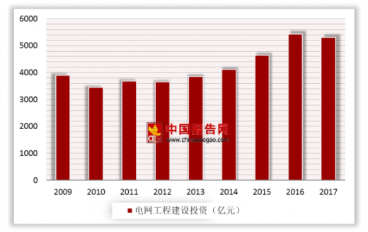 近年来,电网投资比例持续上升,投资比例结构趋于合理,改善了近几年中国电源投资规模过大、增速过快、比例过高的趋势,电源与电网开始协调、科学发展。2017年,电网工程建设完成投资5315亿元,同比下降2.14%。