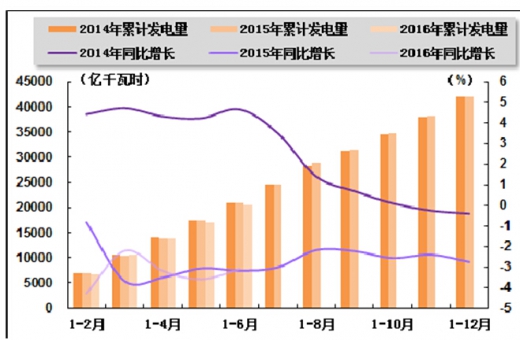 火电生产方面,2016 年 2 季度,受电力供需宽松以及非化石能源发电调峰能力快速增长等因素影响,火电发电量增速持续低迷,累计发电量仍位于负增长区间。国家统计局发布的数据显示,2016 年上半年,全国累计完成火电发电量 20,579 亿千瓦时,同比下降 3.1%,降幅与 2016 年 1 季度相比扩大 0.9 个百分点,与上年同期相比收窄 0.1 个百分点。其中,6月份,全国共完成火电发电量 3,457 亿千瓦时,同比增长 0.6%,5 月份为下降 6.4%,上年同期为下降 5.8%。 2015 年 6 月-2016 年 6 月火电发电量及同比增长情况