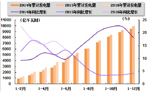 2016 年 2 季度,电源结构继续优化,清洁能源发电量继续较快增长,占比较上年同期持续提升;火电出力依旧欠佳,火电发电量占比继续下降。国家统计局发布的数据显示,2016年上半年,水电、和发电量分别占全部发电量的比重为 17.4%、3.5%和 4.5%,与上年同期相比分别提高 1.6、0.6 和 0.8 个百分点;同期,火电发电量占全部发电量的比重为74.6%,与上年同期相比下降 3.1 个百分点。