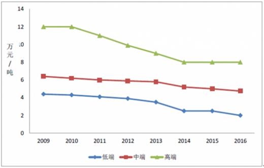 供给端产能过剩明显。据统计,截至2015年底国内负极材料生产企业达50余家,2016年国内负极材料竞争力前十企业的产能合计约12.15万吨,这十家企业的在建产能4.8万吨,供给端的产能已远远超过动力锂电负极材料的需求规模。