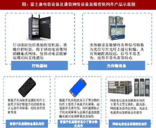 图:富士康电信设备及通信网络设备高精密机构件产品示意图