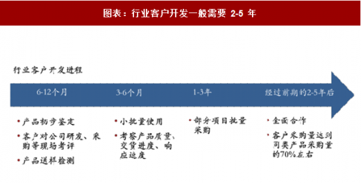 行业客户对自身的需求十分熟悉,一般具有比较严格的供应商筛选体系,从接触到比较稳定的合格供应商,一般需要 2 到 5 年左右。期间,客户会对供应商进行研发、采购、生产、质量等方面的严格考评,最后才能成为稳定的合作关系。而在批发零售市场,大多数小型客户对自身的需求并不熟悉,且数量非常分散,厂商需要借助经销商和分销商的力量开拓市场。