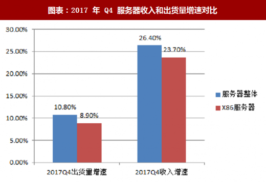 无论是 gartner 还是 idc 在 2017 年 q3、q4 数据统计,全球服务器收入增速均超过出货量增速,单个服务器价格在提升。