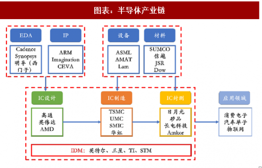 半导体核心产业链主要有设计、制造和封测三个环节,形式有idm和垂直分工两种。