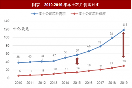 我国集成电路国产化需求强烈,进口替代空间大: