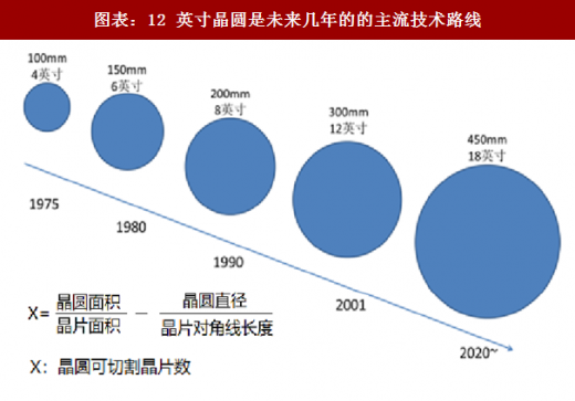 2、 晶圆尺寸的大小决定了生产效率,12 英寸仍是主流路线