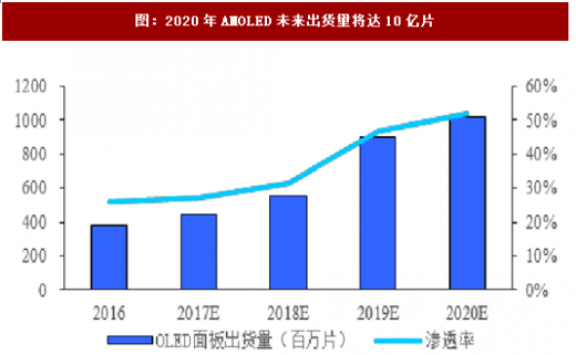 amoled渗透率将快速增加。amoled渗透率两年内将从14%快速上升到26%,且到2020年,渗透率将高达52%,产业产值将超过400亿美元。