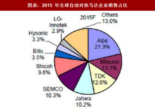 全球音圈马达制造企业数量上百家,主要分布在日本、韩国、中国等区域。2016 年日本企业占据全球市场份额超过四成,并掌握着先进技术和制造能力,代表企业主要有阿尔卑斯(alps)、三美(mitsumi)、tdk 等。韩国企业占据全球市场份额超过两成,与日本企业一道长期处于主导地位,代表企业主要有三星电机(semco)、磁化(jahwa)、hysonic 和 lg-innotek 等。中国企业全球市场份额超三成,代表企业主要有新思考、比路电子、皓泽、中蓝等。
