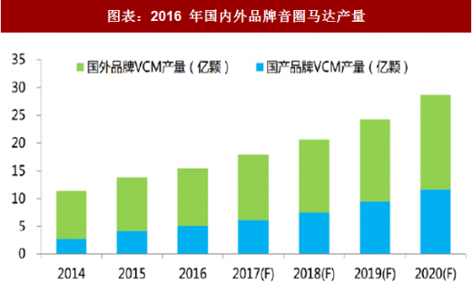 2016 年国产品牌音圈马达产量 5.06 亿颗,国外品牌产量 10.43 亿颗,市场近七成供应量来自国外品牌。预计未来国产品牌产量将逐步提升。
