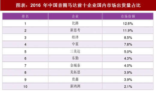 2013 年以前全球音圈马达市场几乎都被日韩企业垄断,市场高度集中。从2013 年开始,国内需求迅速扩大,许多国内企业进入该市场。2014 年国内音圈马达企业数量达到 40 家左右,2015 年达到 60 家以上,2016 年音圈马达产品利润持续下降,产品质量要求逐步提高,许多小型企业面临破产或者转型,国内企业数量缩减为 50 家左右。随着国内手机产业链逐渐成熟,比路电子、新思考等国内企业在质量和技术上都有较大进步,已经具备供应闭环式马达、ois 马达、高像素马达的能力,抢回部分国内市场,初步打破日韩企业的垄断。华为、oppo、vivo、小米、中兴、联想等已经采用国产音圈马达产品。随着国产产品市场竞争力逐渐增强,未来国内企业市场份额有望进一步提升。