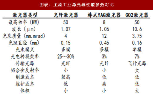 7) 商业高功率光纤激光器稳定输出功率可达6kw。综合来看,光纤激光器高效率和低维护成本的特点受到系统集成商的青睐,成为未来工业激光器的发展方向,在许多领域逐渐代替传统的固体激光器和co2激光器