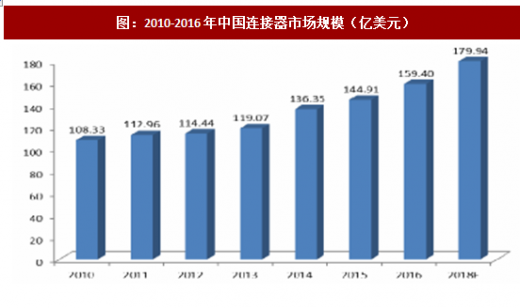 复合增长率为7.96%,显著高于全球同期增速。随着我国经济的持续增长,连接器市场将保持持续增长,预计到2018年有望达到180亿美元的规模。
