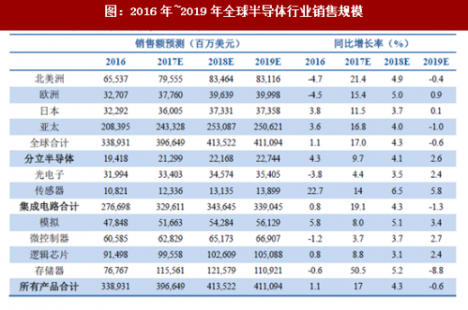 不考虑存储器(dram、nand flash)的影响,ic insights预计2017年全球半导体市场将成长9%。微控制器、逻辑芯片、模拟芯片、传感器等领域也将实现不同程度的成长。我们认为,2017年半导体最大的增长品种包括存储器、模拟电路、传感器等,增长区域主要来自亚太(特别是中国)和美国。