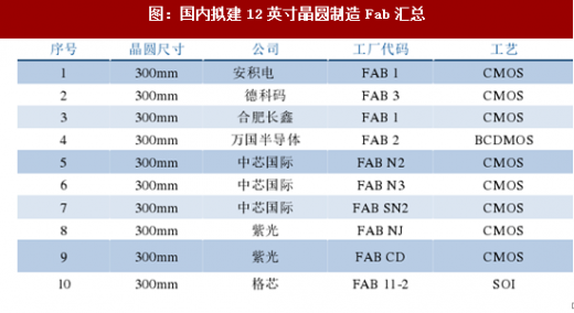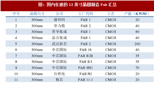 根据中国电子报的统计,截至2016年底,中国在建的12英寸晶圆产线有11条,在建产线产能合计为58万片/月(其中包括24万片/月的存储器产能),拟建的12英寸产线有10条,拟建产线合计产能为50万片/月。假设上述在建的和拟建的12寸产线顺利投产,2020年中国将新增超过100万片/月的12英寸产能。