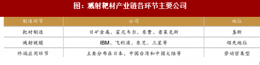 作为溅射靶材客户端的溅射镀膜环节具有规模化生产能力的企业数量相对较多,但质量参差不齐,它们拥有溅射靶材生产能力,但是对于高纯度金属原料却需要上游企业供应。美、欧、日、韩等国知名企业居于技术领先地位,品牌知名度高、市场影响力大,通常会将产业链扩展至下游应用领域,利用技术先导优势和高端品牌迅速占领终端消费市场,如旧m、飞利浦、东芝、三星等终端应用环节是整个产业链中规模最大的领域,其产品的开发与生产分散在各个行业领域,同时,此环节具有突出的劳动密集性特点,参与企业数量最多,机器设备投资一般,主要分布在日本、中国台湾和中国大陆等,并逐渐将生产工厂向人力成本低的国家和地区转移。