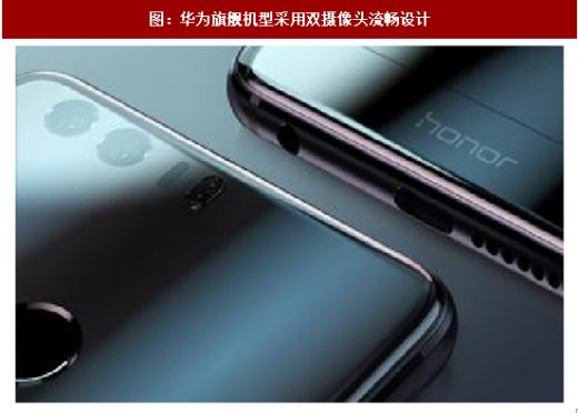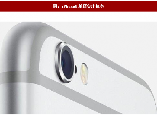 而在外观设计方面,单摄提升画质往往通过增加透镜组数量来提升,厚度也随之增加。以iphone6为例,其中仅rear camera就使用了6片蓝宝石镜片,镜头模组突出在手机盖板之外,影响整体流畅度和美观,不符合未来智能手机轻薄化需求。而另一方面,双摄像头在同等画质条件下,通过将原来的单摄功能分摊到两个摄像头上,有效地平衡智能手机性能需求和摄像头工艺之间的矛盾。