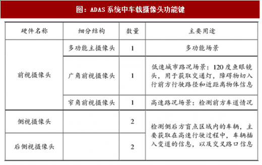 2、除消费电子外,汽车电子同样为摄像头市场带来新驱动力adas系统为车载摄像头带来新的增量需求