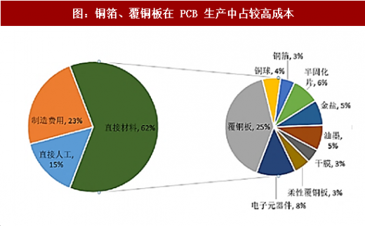 pcb 成本包括制作成本和材料成本。材料可分成电子化学品、和板材。板材中覆铜板和铜箔占比较高,因此价格受铜价波动而波动。