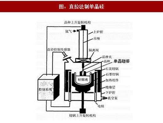 直拉法是把装在坩埚里的多晶硅熔融后用一块硅单晶(常称仔晶或晶种)引导,慢慢提起,出坩埚部分凝固后就成为硅单晶体。