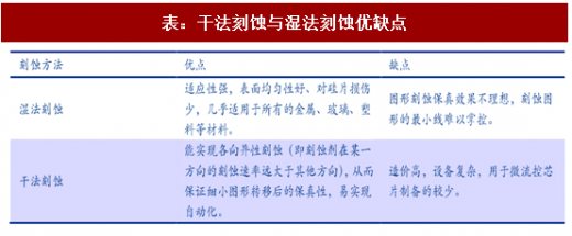 刻蚀是将材料使用化学反应物理撞击作用而移出的过程,可以分为湿法刻蚀和干法刻蚀。 湿法刻蚀是使用化学溶液,经过反应后达到刻蚀的目的。干法刻蚀是利用电浆撞击晶片产生的物理作用,或电浆中活性自由基与晶片表面原子间的化学反应达到刻蚀目的。