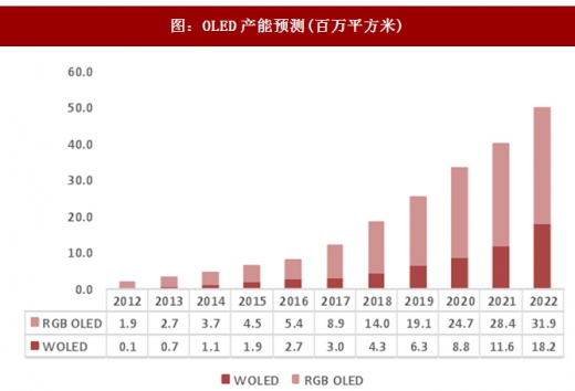 以及白光oled(woled)在内,预计将从2017年的1190万平米增至2022年的5010万平方米,增幅达到320%。其中rgboled面板的产能将从2017年的890万平方米增至2022年的3190万平方米,woled面板的产能也将从2017年的300万平米增至2022年的1820万平米。三星rgboled面板产能将从2017年的770万平方米增至2022年的1660万平方米,仍将是智能手机rgboled面板的主要供应商。但是,中国所占份额将会增加。据估计,到2022年,韩国面板制造商在全球amoled产能中所占的比重将从2017年的93%下降至71%,而中国制造商的市场份额则将从2017年的5%增至2022年的26%。