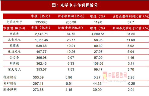 我们再次拆分子行业光学光电子和电子制造,同样发现大市值公司对子行业净利润增速创新高贡献较大。其中,对光学光电子板块利净润影响排名第一的公司是京东方a,排名第二公司是三安,两者合计占光学光电子板块净利润比重43.54%。前三季京东方a的净利润增速为4503.51%,三安光电的净利润增速为58.95%,而前三季度光学光电子净利润增速为 119.0%。