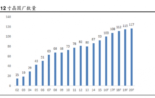 ic insights 数据显示全球营运中的 12 寸(300mm)晶圆厂数量持续成长,预期2016 年预期可达到 100 座。目前全球有 8 座 12 寸晶圆厂预计 2017 年开张,到2020 年底,预期全球将有再 22 座的 12 寸晶圆厂营运,让全球应用于 ic 生产的 12 寸晶圆厂总数达到 117 座。
