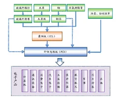 印刷线路板产业链上游主要包括玻璃纤维布、铜箔、环氧树脂等原材料的生产及覆铜板的生产。下游为各类电子产品的生产,包括计算机、通信设备、消费电子、汽车电子、工业控制、医疗仪器、航空航天等行业。印刷线路板产业链具体流程如下图所示:pcb产业链流程