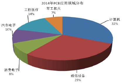 电子信息产业的蓬勃发展是pcb行业发展的重要助力。2014年,计算机、通信设备是全球pcb应用领域中占比较高的部分,工控医疗占比约为14%,消费电子占比达8%。